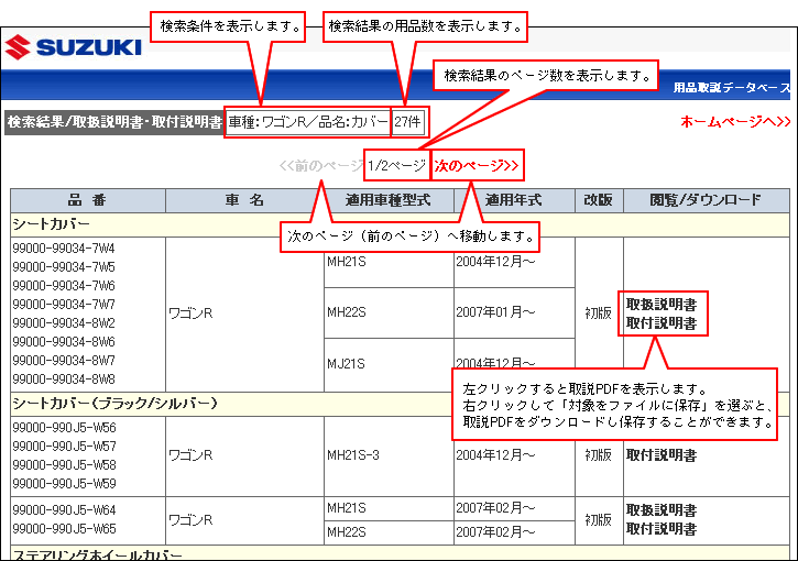 検索結果画面の使い方
